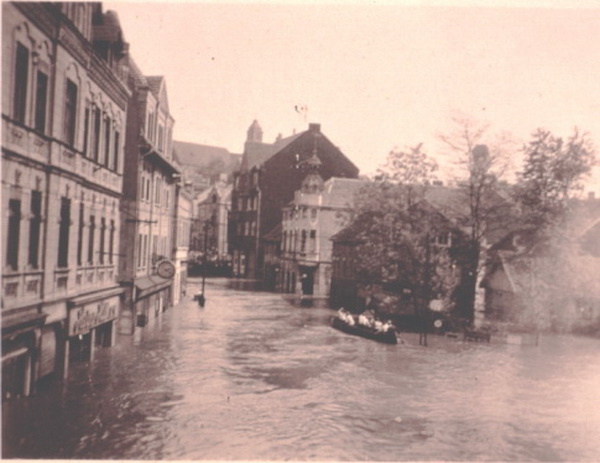 Dr.-C-Otto-Straße waren völlig überflutet, das damalige Postamt stand inmitten der Fluten. Im schönen und sonnigen Mai war man nicht