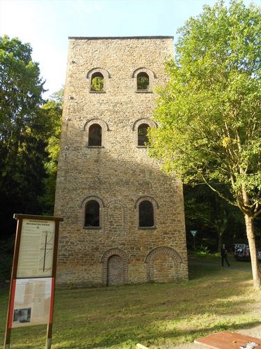Der Turm von Brockhauser Tiefbau. Er ist der zentrale Standort des Berbaulehrpfads in Bochum-Stiepel. Um den Witterungseinfluss zu minimieren soll er wieder ein Dach erhalten. Dazu ist jede Spende willkommen.