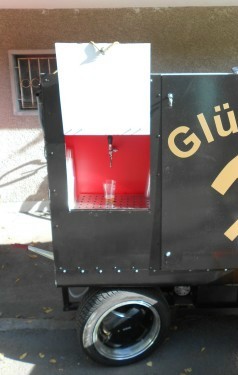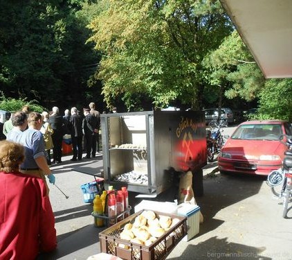 Besonderes Interesse erweckte ein umgebauter Kohlewagen des Knappenvereins Bochum-Werne. Hinten ein Grill und vorne ein Zapfhahn mit integriertem Bierfass.