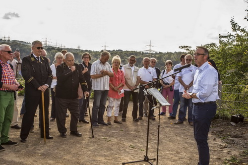 Anfang Oktober wurde die Tafel von Marc Gräf in Vertretung der Bezirksbürgermeisterin Bochum-Süd Doris Erdmann mit Jochen Hopmann für die Naturfreunde - als Spender der Tafel - an die Öffentlichkeit übergeben. Es waren rund 80 interessierte Bürgerinnen und Bürger zu der Veranstaltung nach Dahlhausen gekommen, darunter auch einige Augenzeugen von damals.