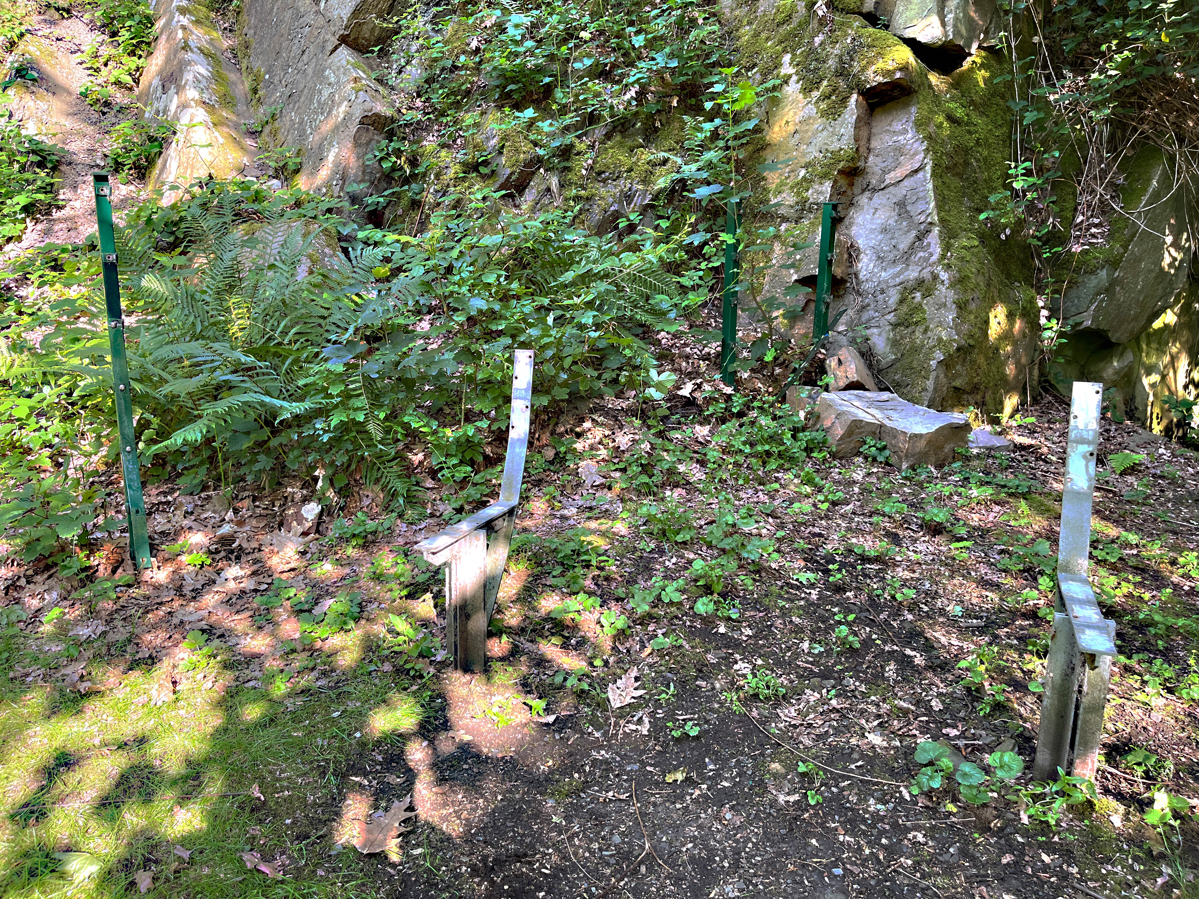 Der Bewuchs vor dem Stollenmundloch war schnell entfernt. Etwas länger dauerte das Reinigen der Begrenzung aus Holzbalken mit ihren vielen Spalten.