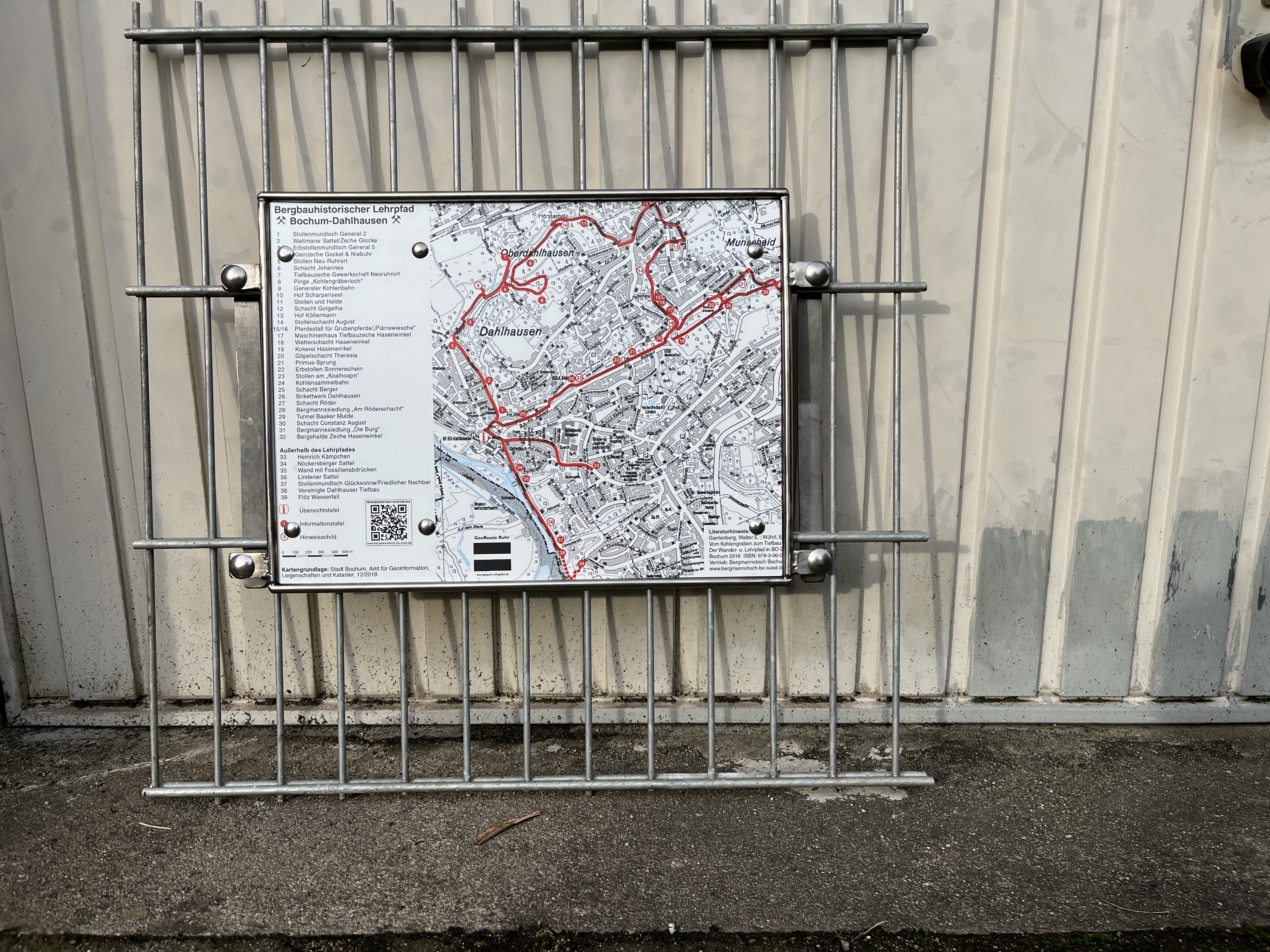 Das Mundloch gehört zu den Vorgängerstollen der Zeche Dahlhauser Tiefbau. Der Stollenbetrieb begann mit der Mutung 1770 und endete 1838. Die Förderung war mit nur einigen Tausend Tonnen jährlich recht bescheiden. 1873 mauerte die Zeche Friedlicher Nachbar den 700 Meter langen Stollen aus und benutzte ihn als Förderstollen. Vom Schacht 1 aus verlief eine Pferdebahn zum Bahnhof Dahlhausen. Diese wurde nach etwa 100 m in den Stollen verlegt. Durch die relativ hohe Lage konnten die Kohlen direkt in Eisenbahnwagen unterhalb des Mundlochs gestürzt werden. Ab 1879 wurde der Stollen durch einen Bahnanschluss von Friedlicher Nachbar nicht mehr benötigt. Später wurde er zugemauert. Im zweiten Weltkrieg wurde der vordere Teil des Stollens zu einem Luftschutzbunker ausgebaut. Danach wurde der Zugang mit dem noch vorhandenen Gitter gesichert (später zugemauert). Ein seitlicher Zugang wurde ebenfalls zugemauert, da immer wieder in den Stollen eingebrochen wurde. Der Zugang vom Zechengelände Friedlicher Nachbar lag unterirdisch. Die Veränderungen zeigen die folgenden Fotos.