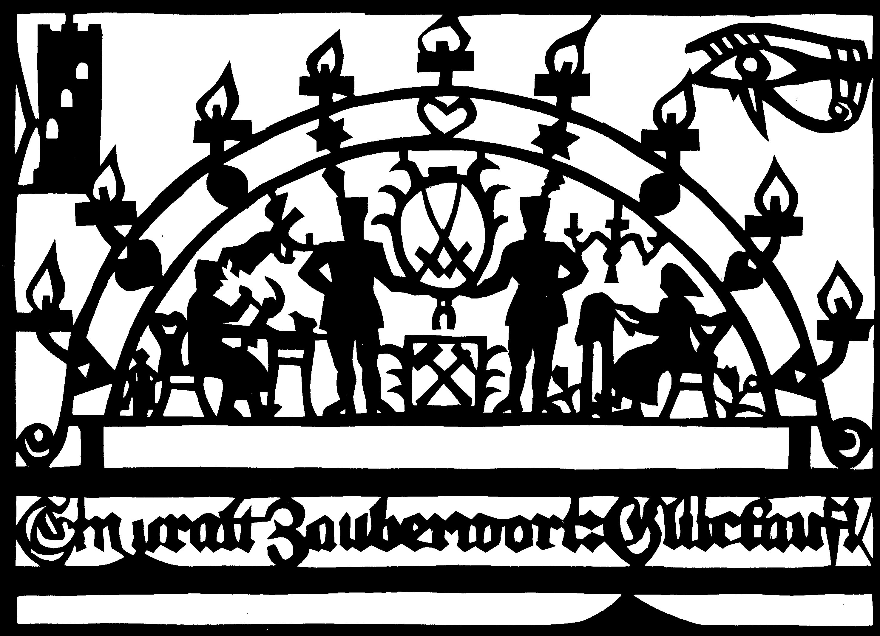 Zu Goethes Lebzeiten war es Mode geworden, den Schatten von Besuchern an der Zimmerwand mit dem „Storchenschnabel“ maßstabgerecht zu verkleinern. Er verschenkte aber auch sein manchmal selbst geschnittenes Selbstbildnis - wahrscheinlich als Liebesbeweis - an schöne Besucherinnen. Diese „unkünstlerische“, wie es Scherenschnitt-Gegner, von dieser Schwarzen Kunst behaupten, ist mit Sicherheit wesentlich älter als die meisten anderen uns bekannten Kunstwerke dieser Welt. Die schwarze Hand bei steinzeitlichen Höhlenmalereien oder bei den alten Griechen die gemalten Schattenrisse auf den herrlichen Amphoren, sind das nicht überzeugende Beweise für ein sehr altes bildhaftes Denken und Darstellen bei den Menschen. Das Spotten der Menschen über andere Menschen aus Unkenntnis und vielerlei anderen Gründen, scheint auch genauso alt zu sein. Sie verspotteten die Ersteller der Bilder in Schattenform, damals und heute. Der Scherenschnitt, das Schattenbild oder die Silhouette können mit der Schere oder dem Schneidemesser geschnitten, mit den Fingern gerissen oder mit Zeichenwerkzeug gemalt werden und so aus der Flüchtigkeit eines kurzen Schattendaseins dauerhaft in alle Ewigkeit wirken. Nur ausgewiesenen Fachleuten ist eine Unterscheidung nach der Herstellungsart möglich. Ich frage doch auch nicht bei einem Ölgemälde nach der Anzahl der Pinselhaare.