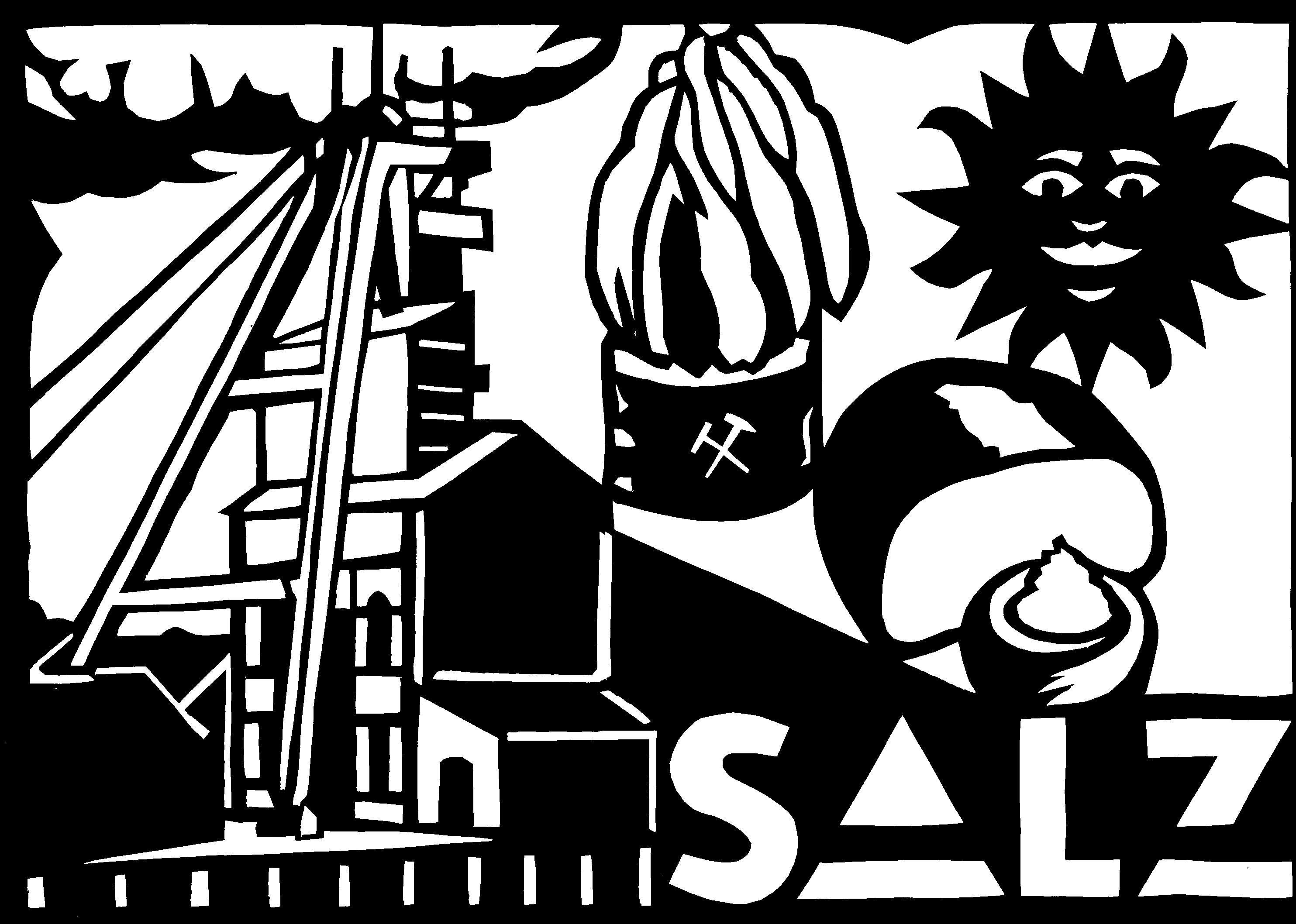 Das nach dem König Wilhelm von Württemberg benannte erste deutsche Steinsalzbergwerk Wilhelmsglück ging 1825 in Betrieb und produzierte bis zum Jahr 1900. Zur Ablösung ist im Jahr 1899 der - im Scherenschnitt - dargestellte Schacht König Wilhelm II. in Bad Friedrichshall-Kochendorf abgeteuft worden. Der 1903 aufgefahrene untertägige Kristallsaal ist eine der ältesten Kammern dieses Salzbergwerks, in denen bergmännische und bürgerliche Feste als Feiern unter den Augen oder zu Ehren der Heiligen Barbara würdevoll veranstaltet werden. Im Jahre 1816 ist man hier erstmals in Mitteleuropa auf diese 25 bis 40 m mächtige Steinsalzlagerstätte in ungefähr 200 m Teufe durch Bohrungen gestoßen.
