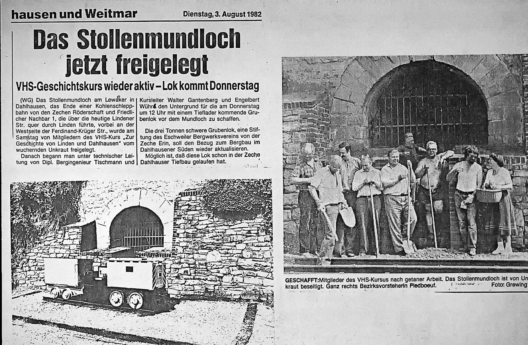 Ab 1982 wurde das Mundloch renoviert und erhielt mit dem Aufstellen der Lok und des Förderwagens den heutigen Zustand. 1988 wurden die ersten verrottenden Schwellen durch die noch heute vorhandenen ersetzt. Dabei wurde relativ großer Aufwand betrieben. Die freundlichen grünen Helfer haben inzwischen eine andere Färbung angenommen.
